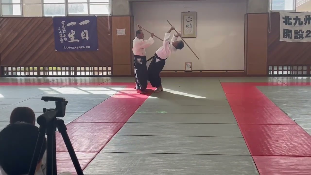 2.合気道小倉祥平塾 笹垣の演武2(2023年10月28日:北九州市立大学29周年演武大会:横から撮影分)